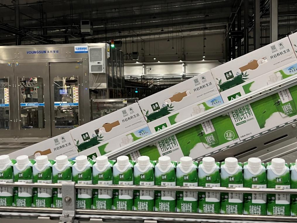 在总投资50亿元的伊利健康谷液态奶全球智造标杆基地,码垛机械手臂灵活旋转、AGV无人驾驶小车智能躲避障碍物流畅穿行,全球一流仓储系统智能管理……目前,该基地日处理原奶可达到6500吨,是全球乳业首家引入全球速度最快、每小时灌装40000包生产线的工厂,每天生产的牛奶可充足保障千万级人口城市的日饮奶需求。还有伊利奶粉全球智造标杆基地,总投资30亿元,年产能6万吨,是目前全球产能领先、技术一流、数智化程度先进的高端婴幼儿配方奶粉生产基地。