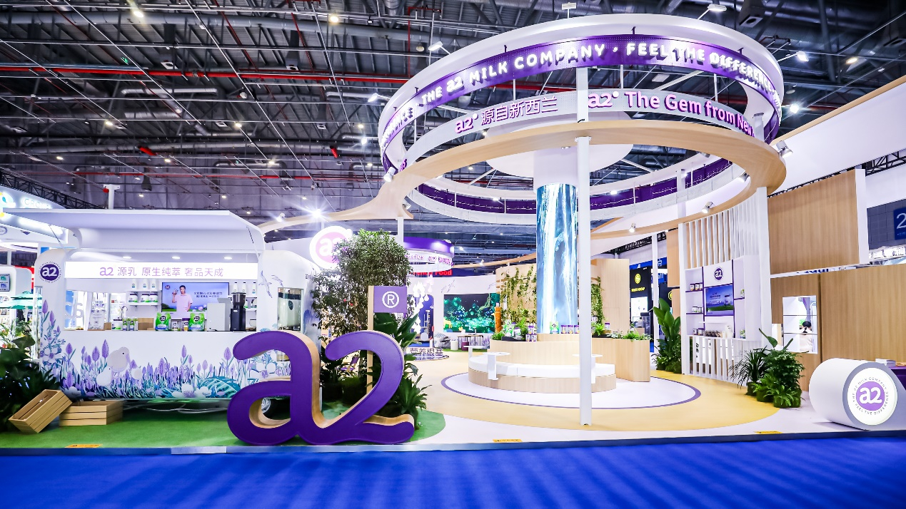 据悉,在今年的进博会上,a2®牛奶公司的展台位于食品和农产品展区,展台以品牌特色的紫色为基础,配以原木色调。