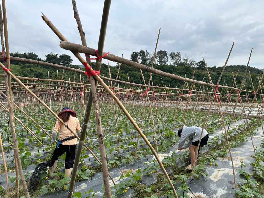 不一会儿,运输车就被青绿色的苦瓜填满。“这一车有1000斤,希望明天能卖个好价钱。”苏江宏告诉记者,他9月育苗、10月栽种、11月就收获了第一车苦瓜,今天这批已经是收获的第10车,价格好的话能收获到明年4月份。