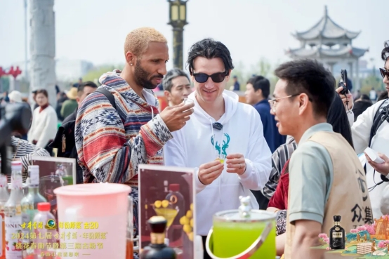 最美不过人间烟火味,美食从古至今都是备受大家青睐的存在,适合踏青的桃花春曲节春日盛宴自然少不了美食的加持,现场热门点位可以说是层出不穷。此次,古井将传统经典美味的美食市集,融合了创新跨界联名的古井&八喜冰淇淋、古井&马迭尔冰棍,以及古井众二酒馆中以古20为基酒调制成的不同口味鸡尾酒。白酒品饮的新形式给予现场游园的人们多重味蕾体验的同时,也吸引了不少年轻游客驻足拍照打卡。