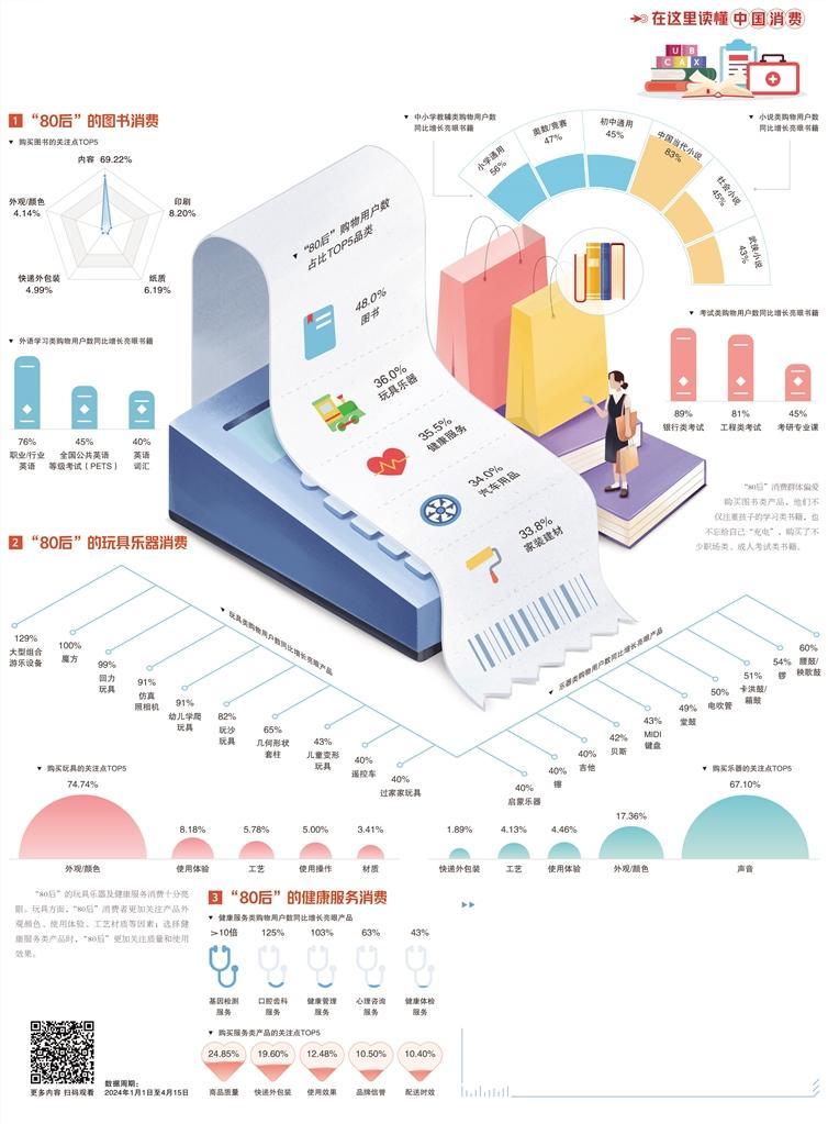 玩过《魂斗罗》《超级玛丽》、看过《还珠格格》《流星花园》的“80后”,逐渐成长为工作和家庭中的责任人,消费观念变得更加理性。从消费趋势看,“80后”在图书、玩具乐器、健康服务、汽车用品、家装建材等领域的消费呈上升趋势。