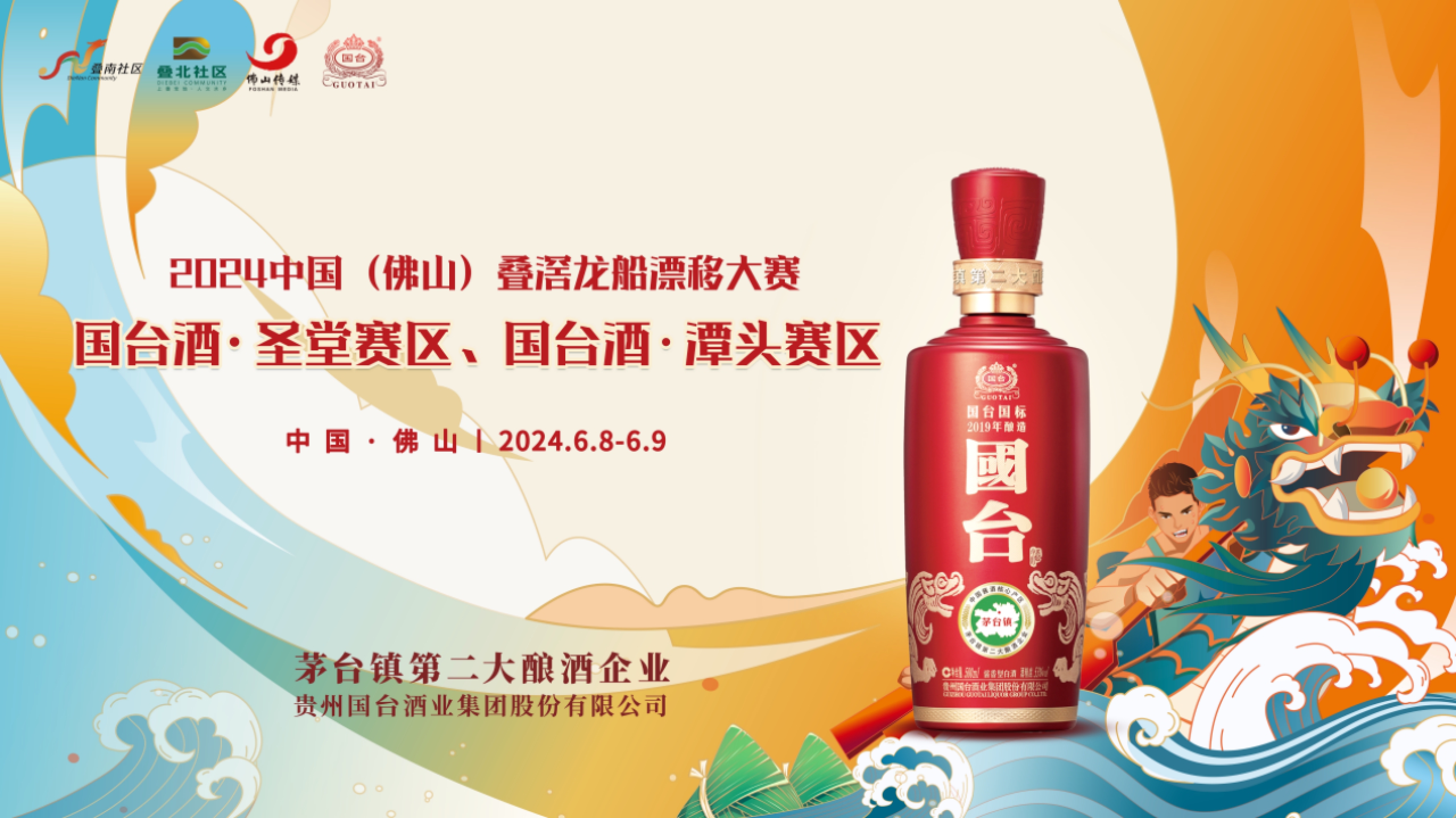 国台酒是中国酱酒核心产区茅台镇第二大酿酒企业,品牌价值位居贵州白酒第三、中国白酒第十。国台酒携手叠滘龙船,冠名圣堂、潭头两大赛区。6月8日也就是大赛首日,国台酒.圣堂赛区将举行“L”湾赛道比赛。6月9日,国台酒·潭头赛区将进行“C”湾赛道比赛。