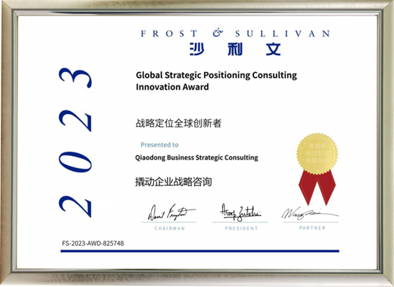 今年7月,全球增长咨询公司弗若斯特沙利文(Frost & Sullivan),基于对全球战略咨询市场的调研和分析,以及对业内相关公司的研究和评估,通过深度访谈、行业分析、二手调研等方法,进行严格的评审,决定将「战略定位全球创新者」授予撬动企业战略咨询。能够获此殊荣,主要得益于撬动在以下几方面的突出表现: