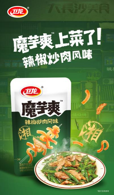 据介绍,麻辣小龙虾风味魔芋爽虾味浓郁、麻辣鲜香、辣爽过瘾,辣椒炒肉风味魔芋爽香四溢、肉香浓郁、口味醇正,再通过卫龙独特的切花工艺让魔芋层层入味、根根吸饱料汁,充分满足当下年轻群体想要探索新奇味觉体验的情感需求。此外,卫龙魔芋爽富含膳食纤维,热量低的同时满足味的享受,亦能满足当代年轻人对健康饮食的需求。