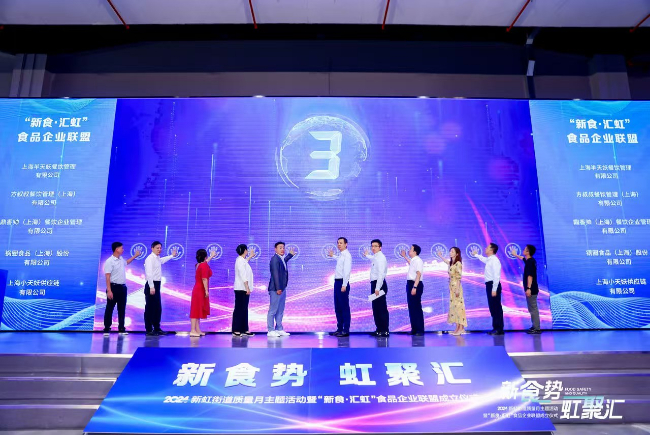 为进一步扩大新虹街道食品行业的影响力,吸引更多优质企业集聚,促进区域内食品产业高质量发展,9月9日下午,新虹街道办事处在虹桥·品汇成功举行2024年新虹街道质量月主题活动暨“新食·汇虹”企业联盟成立仪式,虹桥国际中央商务区管委会、上海市质检院、区经委、区商务委、区市场监管局、区投促中心、新虹街道、南虹桥集团相关领导出席。锅圈食品(上海)股份有限公司(简称“锅圈”)作为新虹区域食品行业“领头羊”及联盟发起企业代表参加了此次活动。