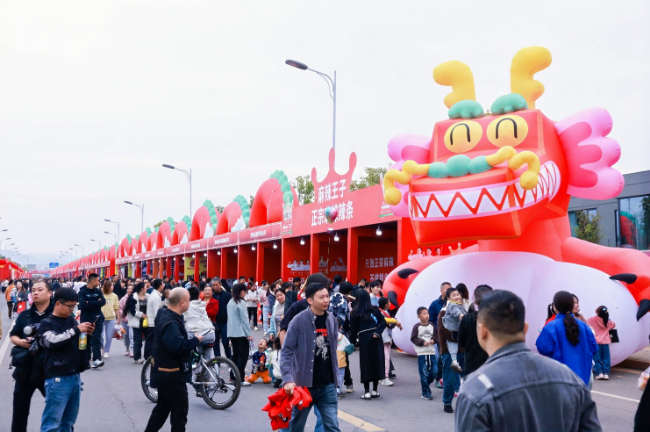 这条红色的“长龙”是2024年“吃货节”食品文化巡礼暨第三届中国(平江)休闲食品文化节的“辣之龙”展区,由120家全国知名休闲食品企业的摊位组成,其中平江企业80家。展区吸引了众多参与者,人们摩肩接踵,在感兴趣的摊位前驻足、品尝、试吃,感受着零食带来的乐趣与味觉体验。