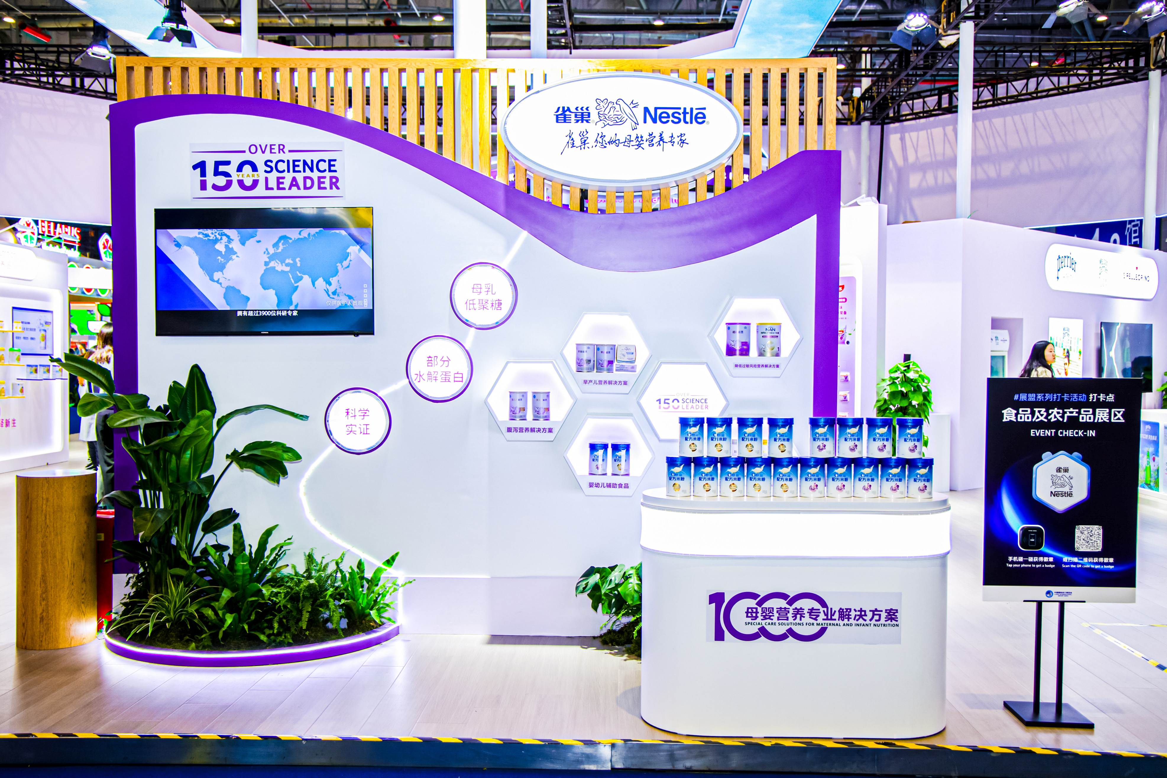 一直以来,雀巢母婴始终坚持以科学为基石的创新理念,洞察生命早期1000天的营养需求,依托强大的全球研发网络,取得了突破性、创新性的科研成果,在雀巢展区呈现了生命早期1000天的营养解决方案和创新产品。