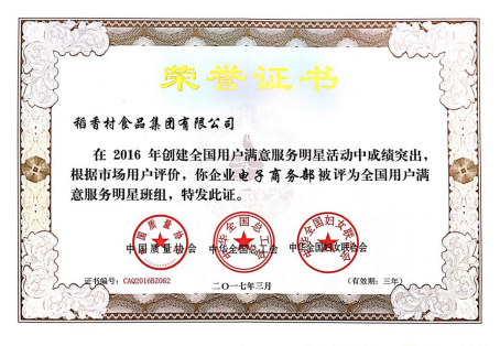 通过与天猫、京东等主流电商平台加大合作力度,稻香村不断完善自营体系,打造企业电商生态链,获得巨大成功。2017年初,阿里研究院首次通过大数据方式对老字号品牌进行电子商务维度测评,并发布《2016年度中华老字号电商百强排行榜》,稻香村位列2016年度中华老字号电商百强排名第11名,领跑食品类中华老字号电商TOP 10榜单。稻香村电子商务部门更是被中国质量协会、中华全国总工会、中华全国妇女联合会共同评为“全国用户满意服务明星班组”。