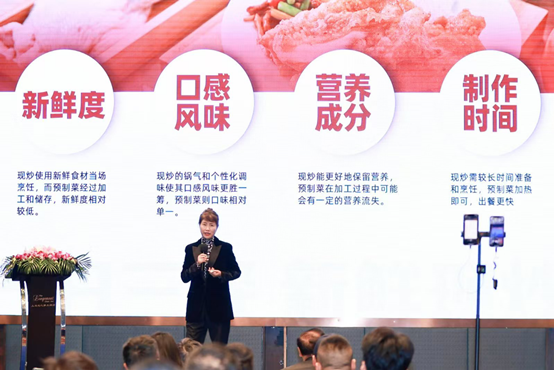 李红说,现炒讲究食材新鲜、切配规范、火候掌握、调味精准,时间控制。具有口感和风味独特、营养丰富、个性化定制、视觉体验佳的特点。现炒在新鲜度、口感风味、营养成分和制作时间上更具优势。