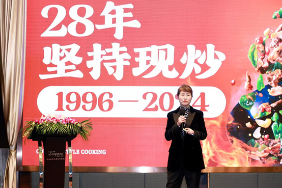李红首先介绍了乡村基的创业历程和对现炒信念的坚守。乡村基1996年在重庆创业,从一家小店开始,到现在28周年一直坚持现炒。