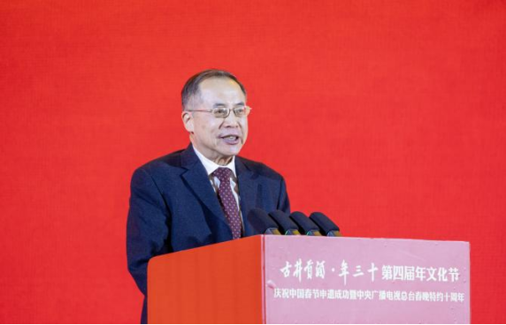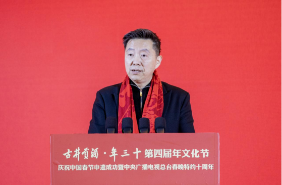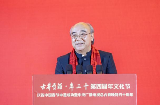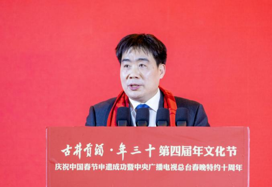 佘贤君在致辞中表示,在与古井贡酒的多年的合作中,我们看到了古井贡酒忠实传承中国年文化的坚定步伐、积极传播中国酒文化的有力实践,古井贡酒也在这个过程中焕发出新的生机与活力。“过大年、喝古井、看春晚”深入人心,古井贡酒·年三十第四届年文化节的举办,是对年文化的一次深情致敬。