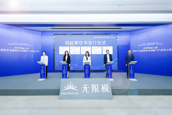 本项目一共设立29个子课题,形成“理论-技术-产业化”全链条创新体系。项目五大课题负责人:中国农业大学教授刘蓉,华南理工大学教授游丽君,中国疾病预防控制中心营养与健康所研究员刘爱玲,哈尔滨医科大学教授牛玉存,无限极(中国)有限公司副总裁、首席科创官马军签署目标责任书。