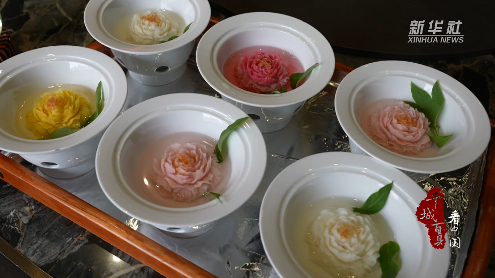 随着牡丹花季的到来,牡丹宴成为山东省菏泽市各大餐饮酒店的招牌美食。厨师们利用本地食材,融入牡丹元素创新研发的各种牡丹菜品,不仅造型美观,而且风味独特,吸引了不少消费者前来尝鲜,俘获了天南海北食客的胃。