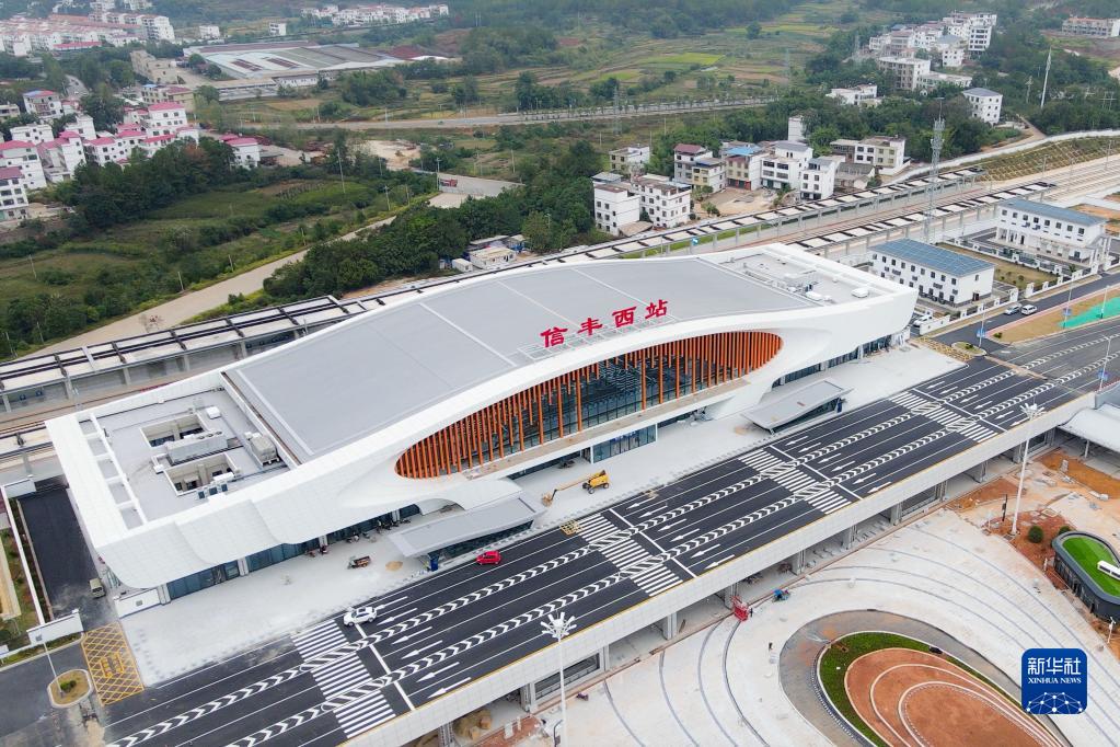 这是信丰西站外景(无人机照片,10月12日摄)。新华社发(张海根 摄)