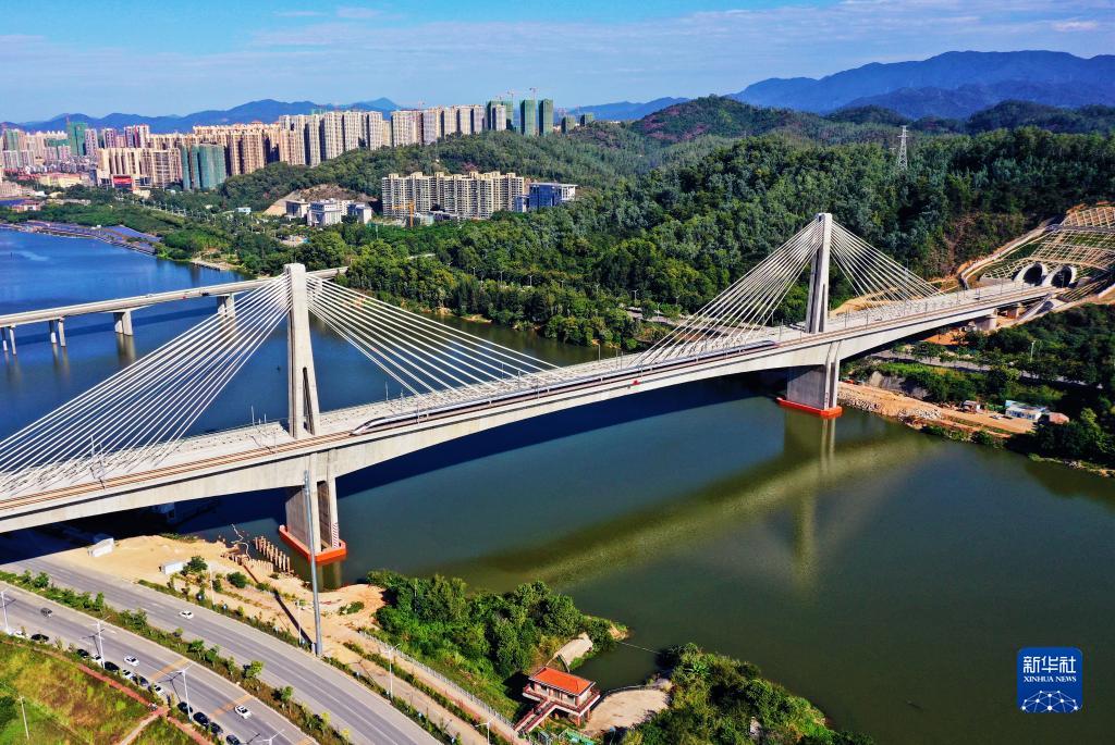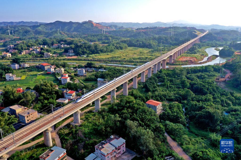 赣州西、信丰西、龙川西……从赣南到粤北,翻山越岭,一路向南,高铁飞驰穿行于一个个充满历史荣光的红色地标,令人心潮澎湃。