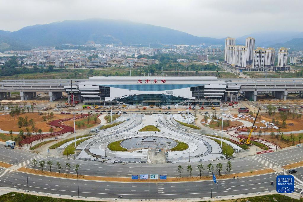 这是龙南东站外景(无人机照片,10月12日摄)。新华社发(张海根 摄)