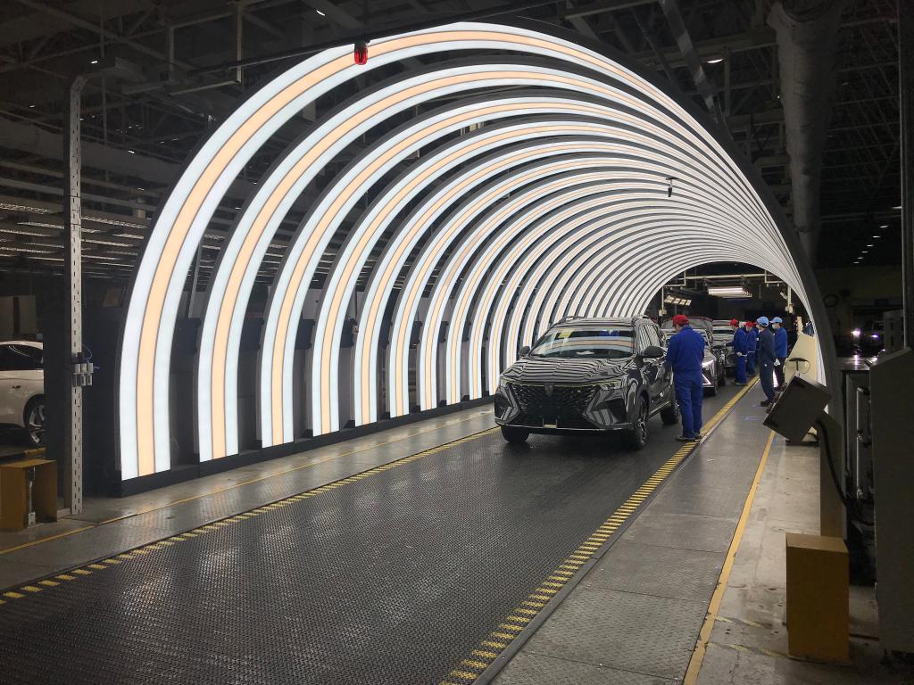 在上汽集团临港乘用车工厂,一辆辆整车正在下线。 新华社记者周蕊 摄