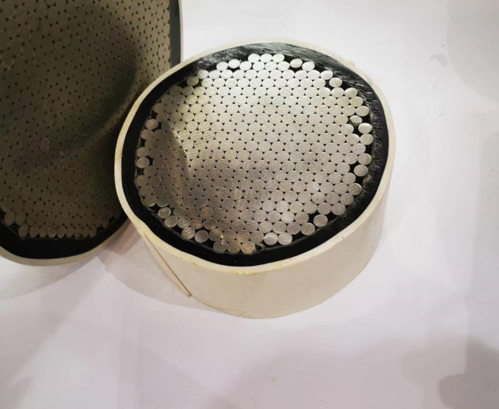 中信集团展台展示的超高强度桥梁缆索钢产品。新华社记者龚雯 摄