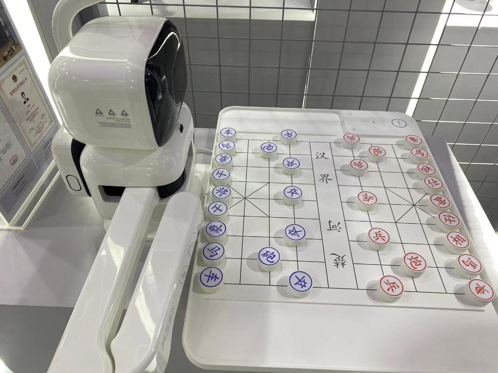 以更智能的城市、更贴心的社会为导向,在城市管理、交通治理、生态环保、医疗健康、教育、养老等领域,人工智能应用也不断突破,为数字生活添彩。走进商汤科技展台,可以看到一个名为“元萝卜”的AI下棋机器人,小小的机械臂能精准操作棋子的移动,实现毫米级的操作精准度,还可以从零基础为孩子讲解象棋文化和规则。
