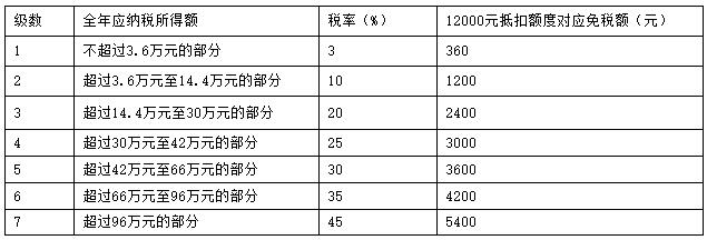 注:表中全年应纳税所得额是指综合所得金额-各项社会保险金(五险一金)-起征点5000元的余额。