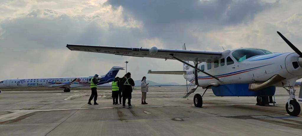 12月17日,从安徽芜湖直达安徽黄山的航班在芜宣机场等待起飞。(芜湖市交通运输局供图)