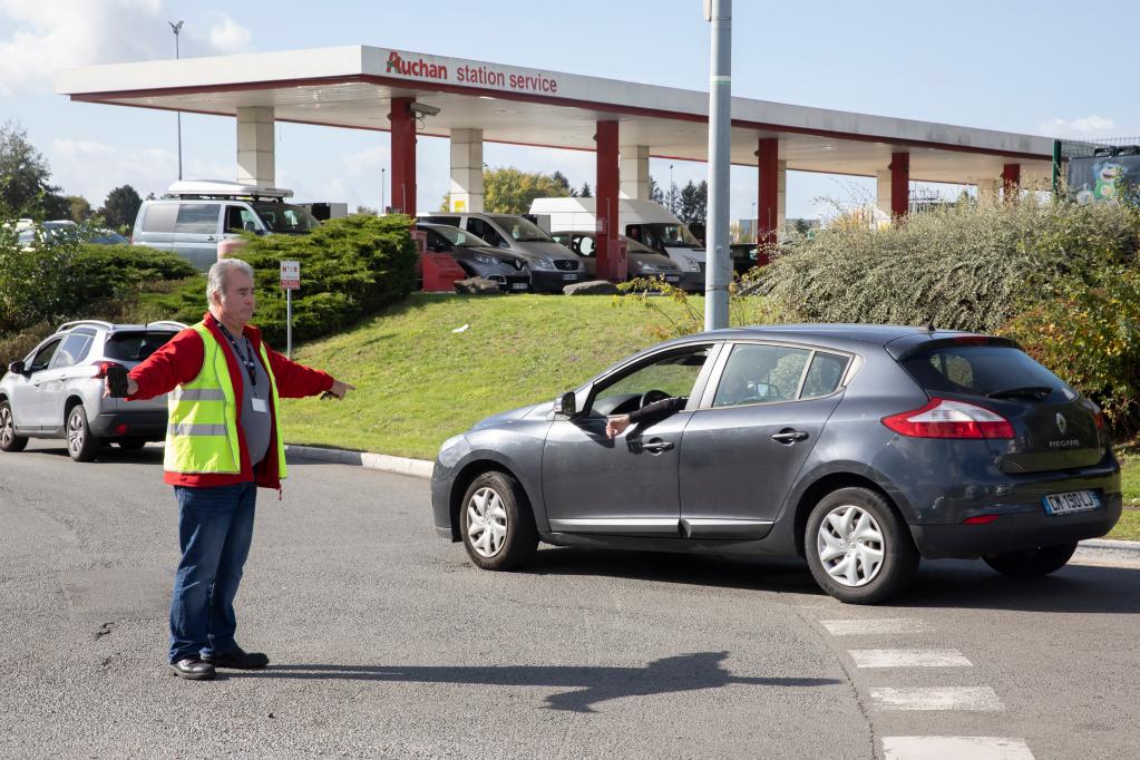 2022年10月6日,法国城市里尔一超市的加油站前车辆排起长队。新华社发(塞巴斯蒂安·库尔吉摄)