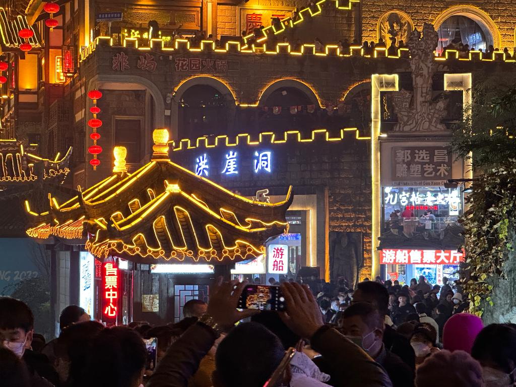 重庆洪崖洞民俗风貌区重现欢闹,“店铺营业额同比增长20%。”一家火锅店店主陈大江说;重庆老街山城巷,红灯笼照亮青石与黛瓦,人们在打卡地排队拍照。“这里古色古香,又融入现代时尚元素,很有氛围!”游客秦艺说。