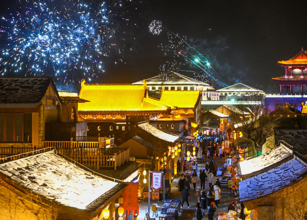 1月14日,游客在金延安文化旅游产业园内游览。新华社发