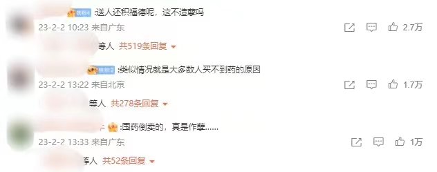 对此,有网友表示,这是“部分人不理智囤货的结果,浪费资源。”有网友认为这是黄牛囤货行为,令人气愤。还有网友心疼道:“哪家垃圾桶,我这就过去收破烂。”“布洛芬过期一年也还能吃呀,为什么要扔呢?”