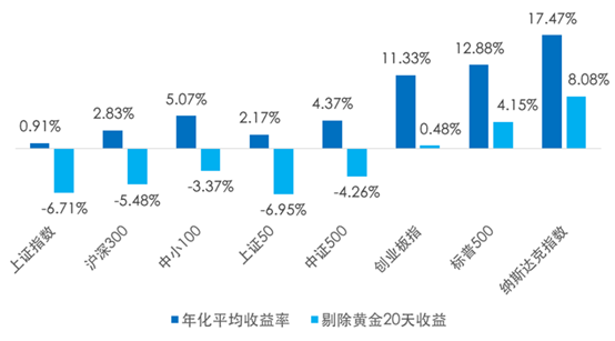 图:剔除涨幅最好的20个交易日后的指数表现对比