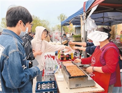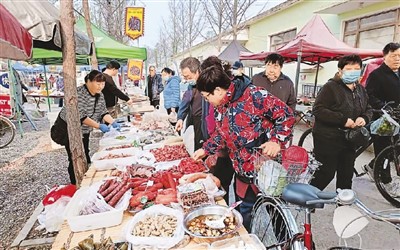 市民在北京市海淀区上庄水乡大集上购买食品。苏明辰 摄