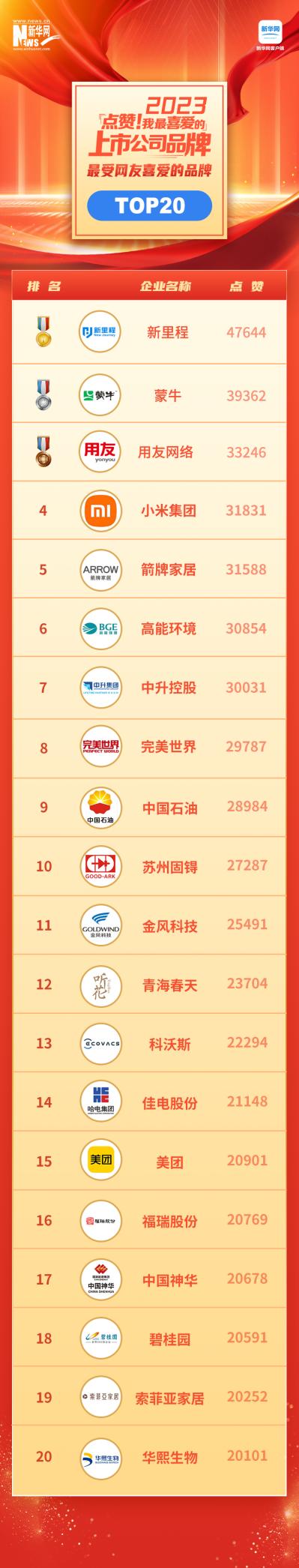在第七个“中国品牌日”到来之际,新华网、新华网上市公司研究院联合发起2023年“点赞!我最喜爱的上市公司品牌”活动,精选数百家知名上市公司品牌进行展示,由广大消费者为喜爱的品牌点赞助力,秉持“科学、公正、公开、公认”的工作原则公布入选结果,共同推动中国上市公司的品牌价值成长,提高自主品牌知名度、美誉度和影响力。