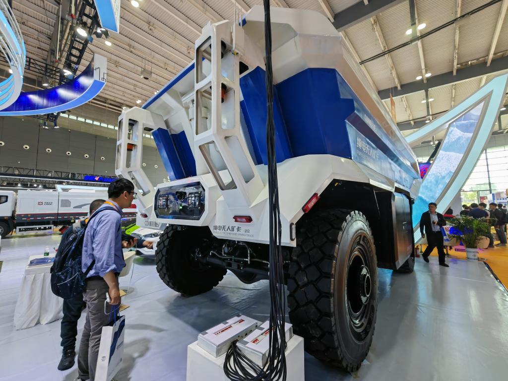 观众参观没有驾驶室的矿卡。新华社记者白田田 摄