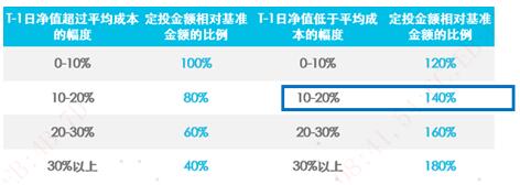 3.基金净值低于平均持仓成本时多投,高于平均持仓成本时少投:根据当前基金净值高于/低于平均持仓成本的百分比,动态调整扣款金额。