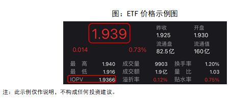 二级市场交易价格和IOPV都可以在交易软件中找到,如图所示,某只ETF产品在某个时点的二级市场交易价格为1.939,IOPV为1.9366。