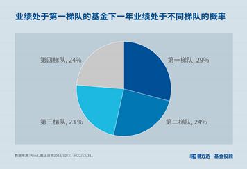 那“看榜选基”的效果如何呢?根据Wind数据统计,如果把过去十年中每一年的基金业绩表现分为4个梯队,上一年业绩处于第一梯队的主动权益基金,下一年业绩落入四个梯队的概率是差不多的,并没有显示出很强的业绩持续性。