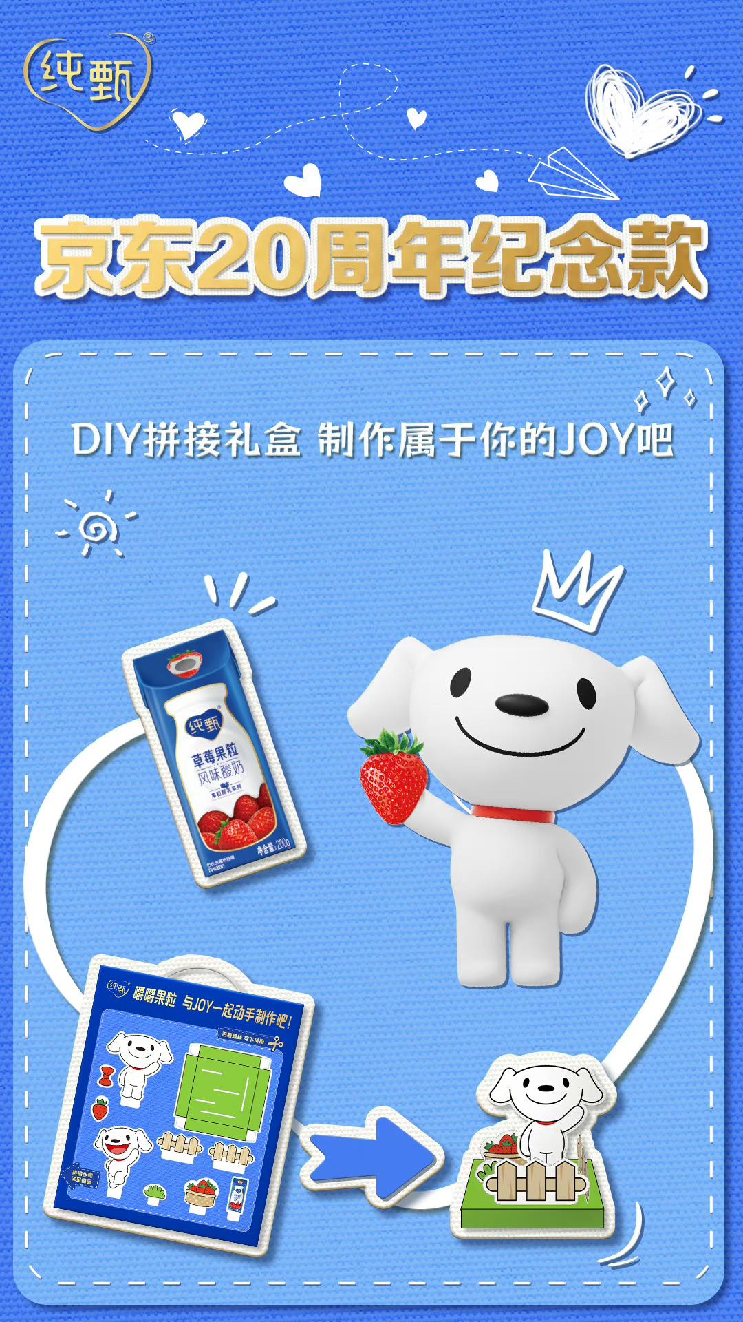 据了解,此次618大促,恰逢京东平台20周年庆,平台庆生让利回馈消费者的氛围浓厚,大促尚未开始,便吸引了众多消费者的关注。对此,蒙牛与京东平台也进行了一些列深度合作,例如蒙牛参与京东平台20周年“超级符号”项目,与平台一起打造传递品牌形象,通过极具品牌特色兼具平台20周年主题的设计海报,广泛的覆盖北京深圳等一线城市;蒙牛嗨基于京东平台消费者数据洞察,特为京东平台20周年庆定制的纯甄草莓笑脸包京东20周年定制装,包装通过JOY的趣味DIY互动,焕新了产品生命力 ,广受消费者好评!