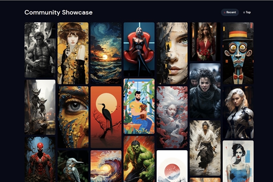Midjourney官网展示的AI绘画作品截图。