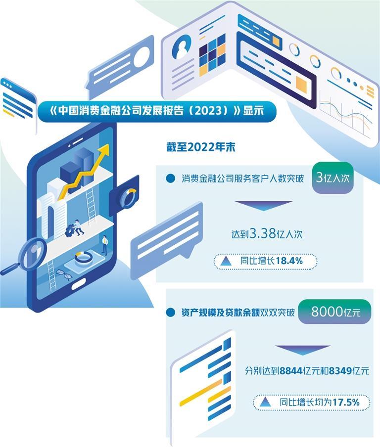近日,中国银行业协会发布《中国消费金融公司发展报告(2023)》显示,截至2022年末,消费金融公司服务客户人数突破3亿人次,达到3.38亿人次,同比增长18.4%;资产规模及贷款余额双双突破8000亿元,分别达到8844亿元和8349亿元,同比增长均为17.5%,高于经济增速和消费增速,为恢复和扩大消费需求作出了积极贡献。
