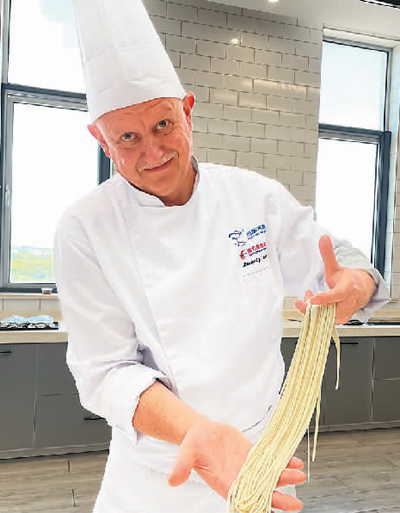 路德维希展示特制面条。