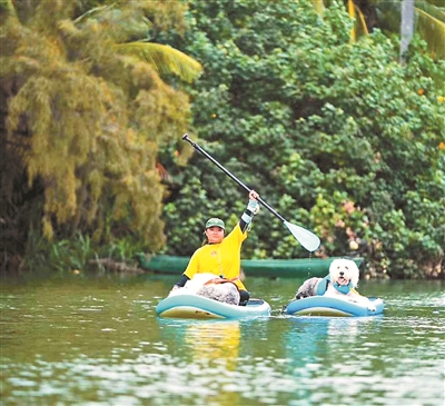 和主人们一起旅游的狗狗们,不但能坐大巴,还能体验坐摩天轮、坐缆车、坐皮划艇,它们可以在主人的陪伴下,去看更广阔的世界。