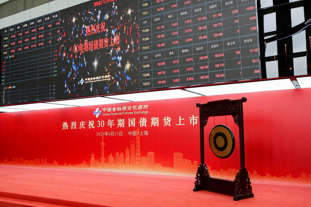 2023年4月21日,30年期国债期货在中国金融期货交易所挂牌上市,作为金融市场重要风险管理工具,30年期国债期货上市将满足长期资金的风险管理需求,更好支持重大的长周期项目投资。新华社记者辛梦晨 摄