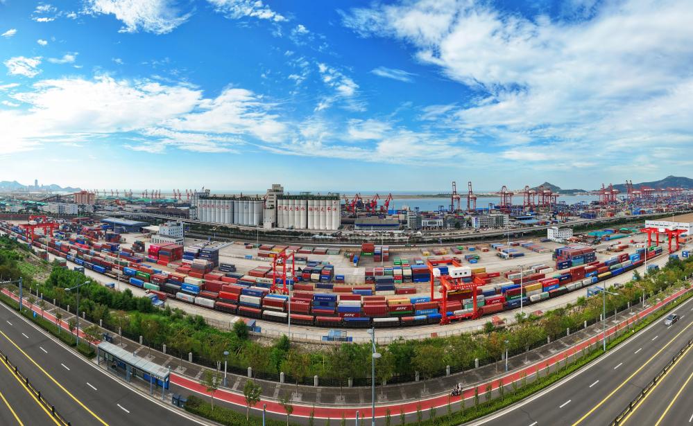 位于江苏省连云港市的中哈连云港物流合作基地(9月4日摄,无人机照片)。新华社发(王健民摄)