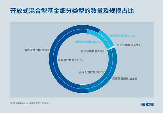 股债平衡型基金的股债配置比例通常较为均衡。根据Wind数据,截至2023年6月30日,市场上的混合基金中,这类基金的占比最小。