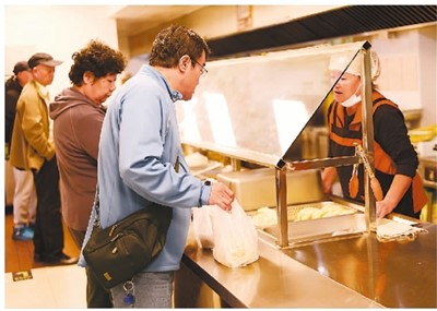 10月17日,北京市朝阳区团结湖福寿苑老年餐桌食堂内,顾客在挑选晚餐。黄金玉摄