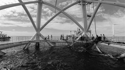 新业态的融合,为耕海牧渔带来更多空间。11月10日,在离岸近百公里的广东阳江远海海域上,随着一声“收鱼”令下,由我国自主研发的风渔一体化智能装备“明渔一号”正式迎来首批渔获。宣告了风机导管架基础与养殖网箱融合发展模式试验取得成功,为“海上风电与海洋牧场”融合开发探索了新路径。