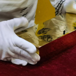 这是5月9日在山东招金金银精炼公司拍摄的金砖。新华社记者 任军 摄