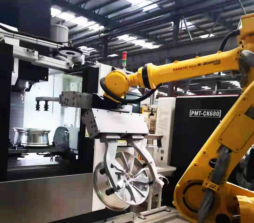 吉利百矿集团铝轮毂项目一期车间,生产线机器人快速运转。项目负责人介绍,企业铝合金轮毂年设计产能1000万只,生产的轮毂可满足大多数品牌的乘用汽车需求。