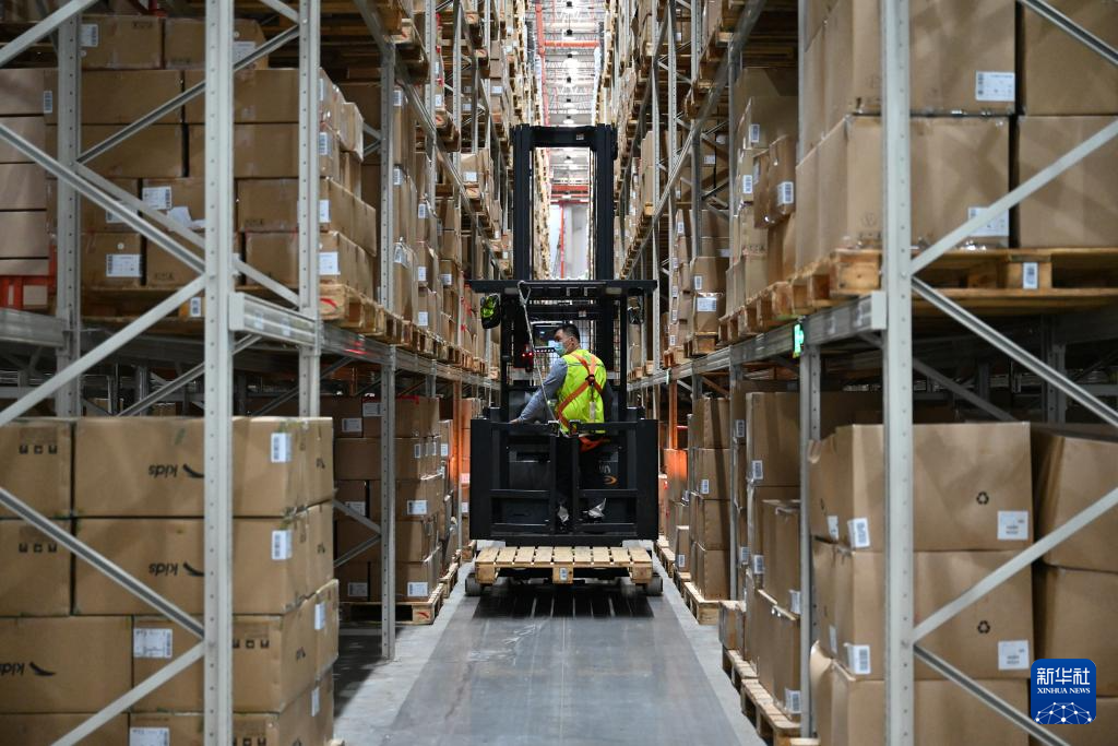 工人在晋江市安踏集团一体化物流产业园忙碌(2022年5月16日摄)。新华社记者 周义 摄