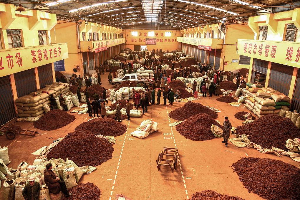 10月24日,在石柱县黄水镇的中国黄连市场,村民在交易黄连。(隆太良 摄)